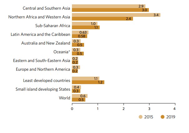 Dal 2015 il tasso di crescita delle rinnovabili ha superato stabilmente quello dei combustibili fossili e nel 2018, per la prima volta, i paesi in via di sviluppo hanno registrato la maggiore installazione di nuovi impianti – principalmente solare e eolico (tasso di crescita rispettivamente del 72% e 22%). Ciononostante, nei paesi sviluppati la capacità di energia rinnovabile per capita è ancora quattro volte maggiore rispetto a quella delle altre nazioni, indicando la presenza di un grande possibilità di crescita.