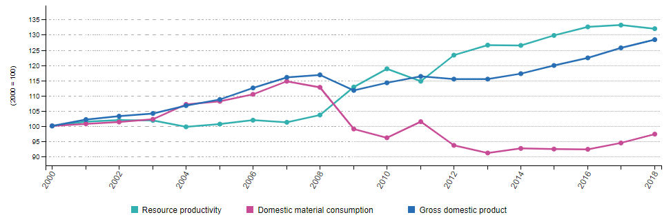 Un altro grande obiettivo dell’Economia Circolare che unisce il primo e il secondo pilastro è il decoupling, cioè il disaccoppiamento della crescita economica dal consumo delle risorse.