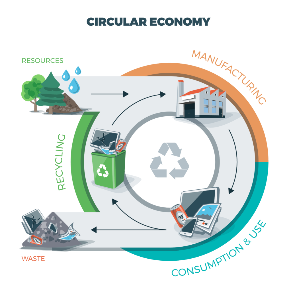 L’Economia Circolare ha come primo obiettivo riuscire a ridurre il consumo di materie prime riutilizzando materia riciclata, evitando il più possibile lo spreco di risorse e diminuendo l’impatto ambientale generato dalla produzione. Per riuscirci, è necessario che le imprese rivedano i propri stili di produzione e consumo che, basandosi sulla creazione di sinergie tra gli stessi reparti o tra aziende differenti.