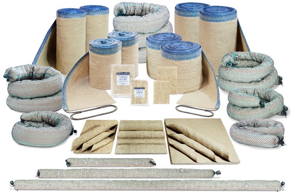 Tra le tipologie di materie prime seconde realizzate per essere riutilizzabili riciclabili o compostabili, troviamo per esempio Geolana, prodotta da scarti di lana di pecora, canapa, sughero: materie seconde organiche eccedenti provenienti da surplus e sottolavorazioni che vengono recuperate e trasformate in geobiotessili e agritessili. I termo-biogeotessili GEOLANA salvasuolo si usano in geotecnica, ingegneria ambientale, per coperture verdi, tetti verdi, rinaturalizzazione delle discariche, ripristino ambientale, disinquinamento e protezione del terreno per una gestione sostenibile e responsabile del suolo senza uso di teli di sintesi petrolchimica. Gli agritessili GEOLANA salvacibo si usano in agrotecnica per la protezione termica di colture, soprattutto per quelle più sensibili agli stress climatici, per la coltivazione di microalghe destinate al biofuel, e per land art; gli oleoassorbitori disinquinanti. GEOLANA salvamare sono invece dispositivi obbligatori nel settore nautico e di prevenzione dei porti per limitare i danni negli sversamenti di olii e idrocarburi per una autentica gestione sostenibile e responsabile del mare senza uso di assorbitori petrolchimici.